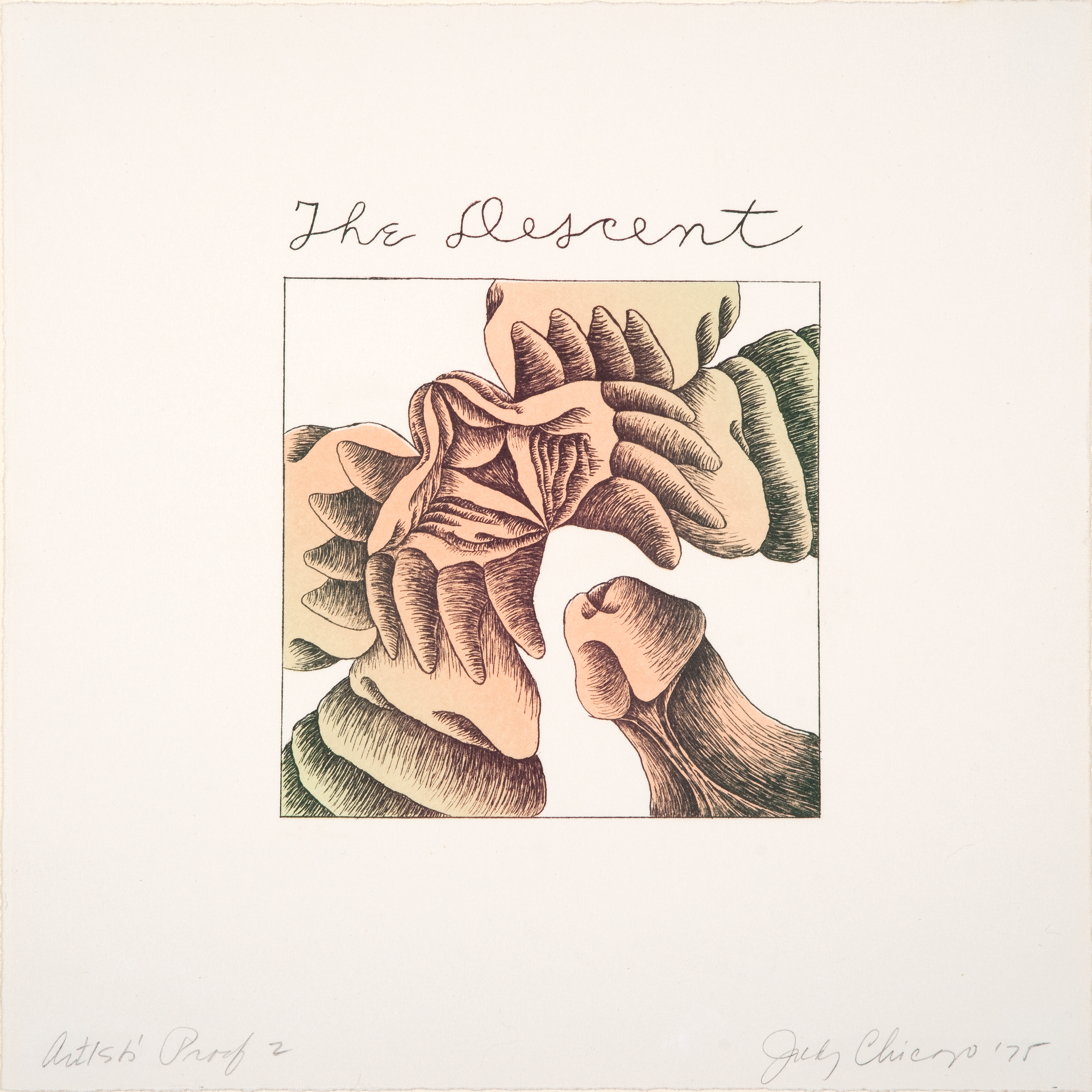 Chicago credits the legendary French writer Anaïs Nin with encouraging her to write (and write she did—nine in total). This box set is a visual adaptation of Nin’s posthumously published book of erotic short stories Delta of Venus (1977). Chicago’s erotic artworks, when combined in a heart shaped box with Nin’s prose, is a testament to the power of female pleasure, sexuality, and friendship. As Chicago writes in the introduction to the companion book, “Despite the many limitations of Delta of Venus, it remains significant because Anaïs began to break the silence about women’s sexuality, as seen from one woman’s perspective.”