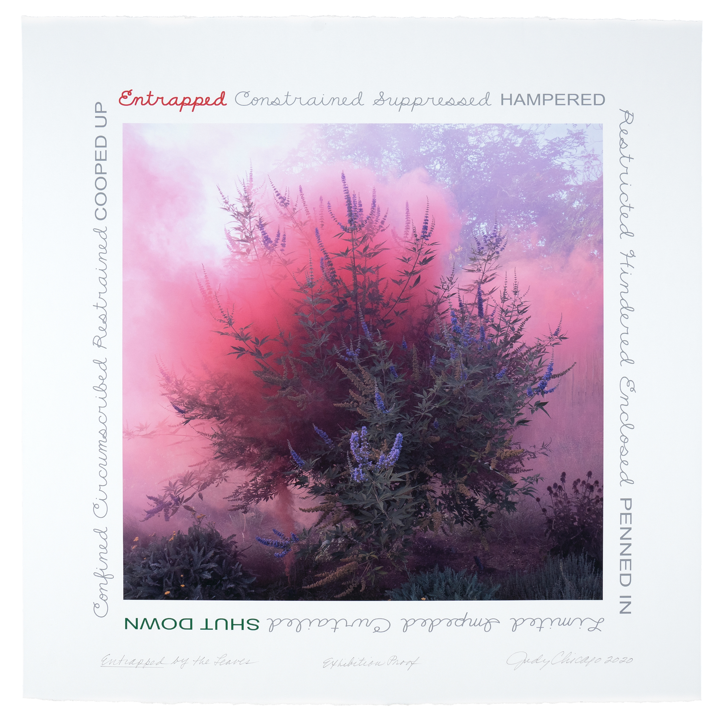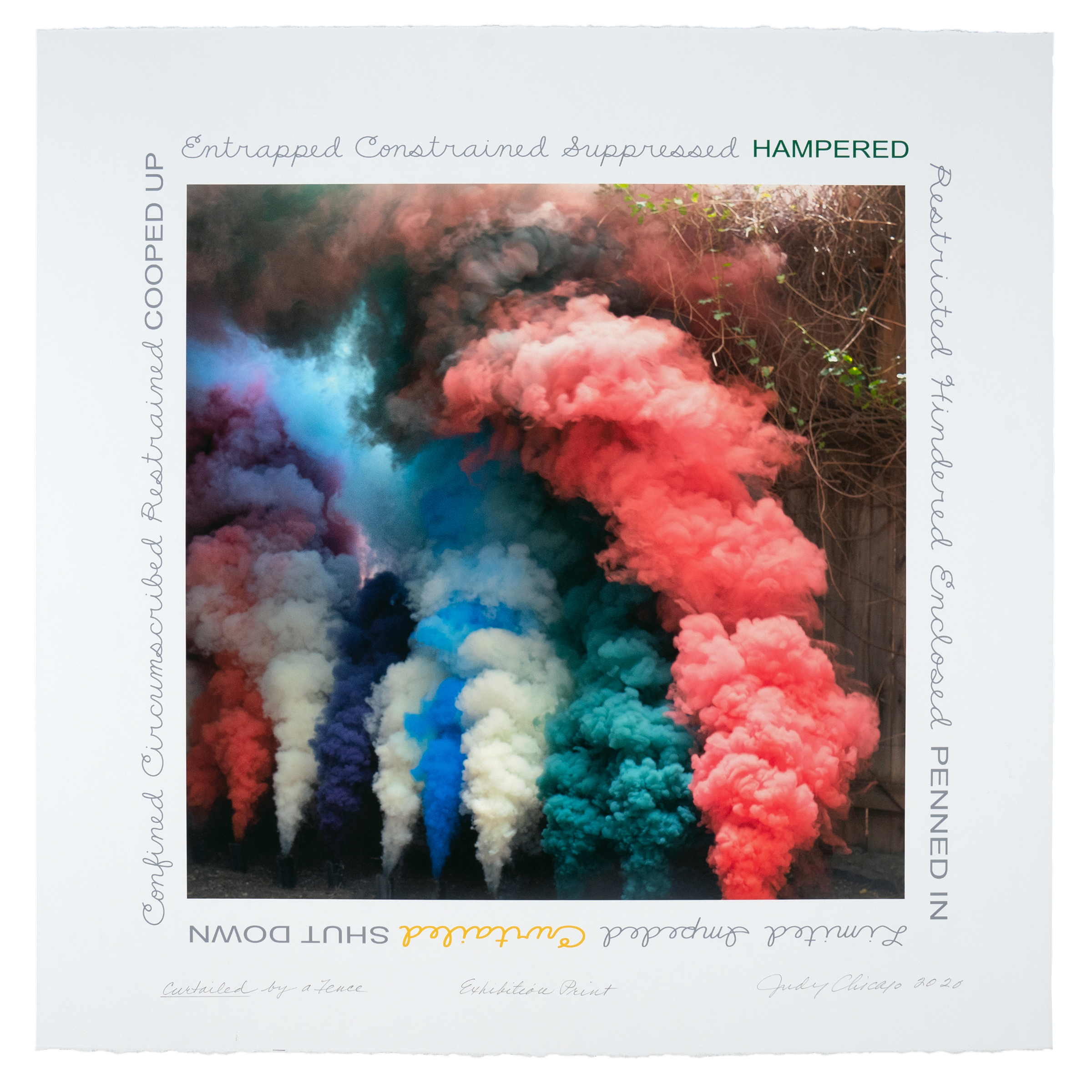 Over the summer of 2020, I decided to fill our own gardens with colored smokes. I surrounded these images with words that are intended to convey the many emotions I experienced as we—like the wafting smoke—came up against during all the restrictions brought about by the coronavirus. This work allowed me to express my feelings during this period; also, to attempt to wrest some moments of beauty and gratefulness from these difficult months.